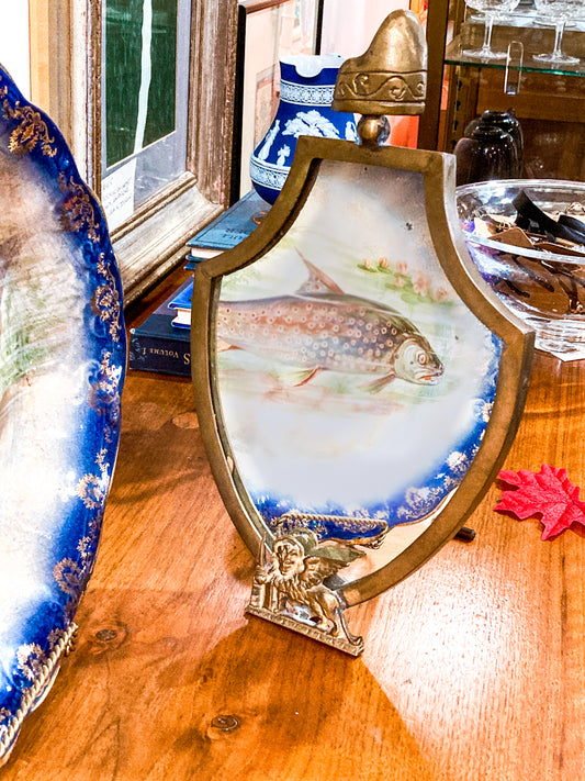 1950s Vintage Swedish Handblown Crystal Aquatic Angel Fish Etched Vase