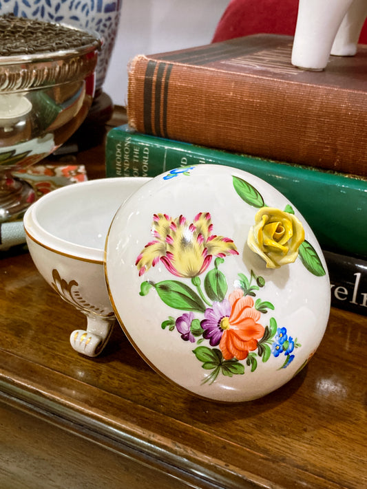 20th Century Herend Hungary Hand Painted Porcelain Yellow Rose Trinket Box