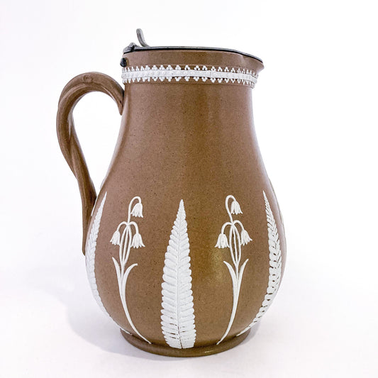 Antique 1850s Dudson Pottery English White Flora Tan Wedgwood Style Syrup Jug