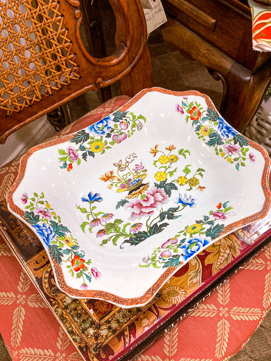 Antique 1850s Wedgwood Enameled Multicolor Floral Footed Compote Dish