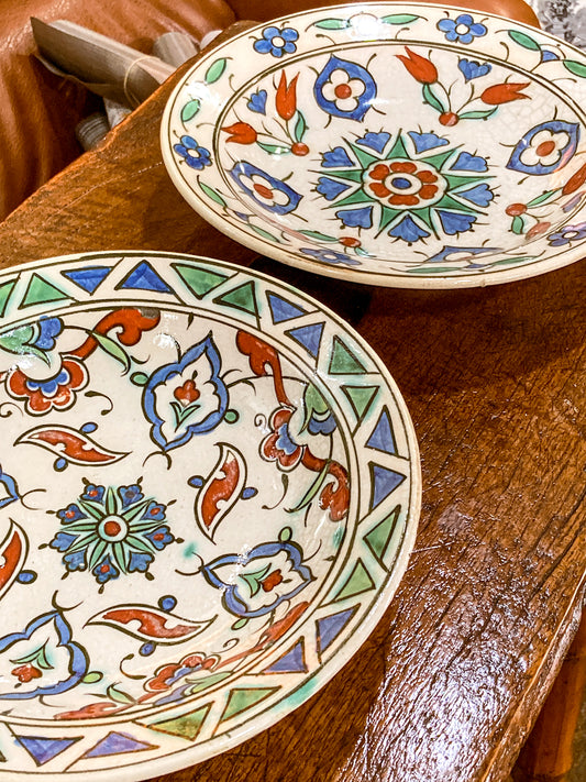 Pair of Vintage Colorful Floral Hand Painted Ceramic Iznik Bowl Plates