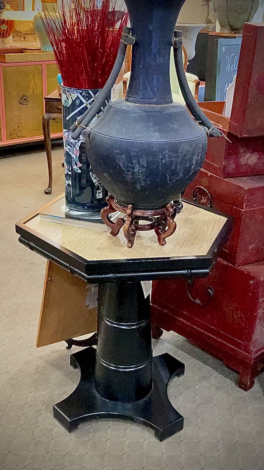 Repurposed Vintage Black Fiberglass Wood Top Hourglass Accent Side Table