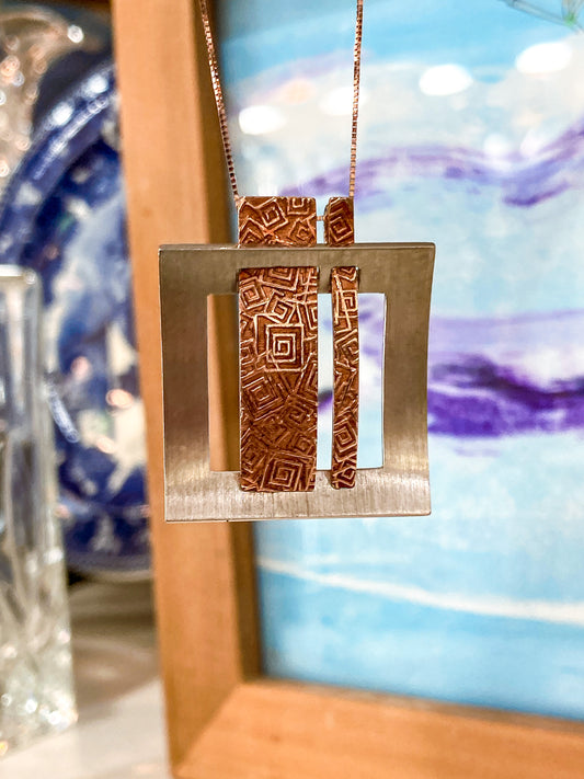 14K Rose Gold Chain Bruening Contrast Openwork Geometric Pendant Necklace