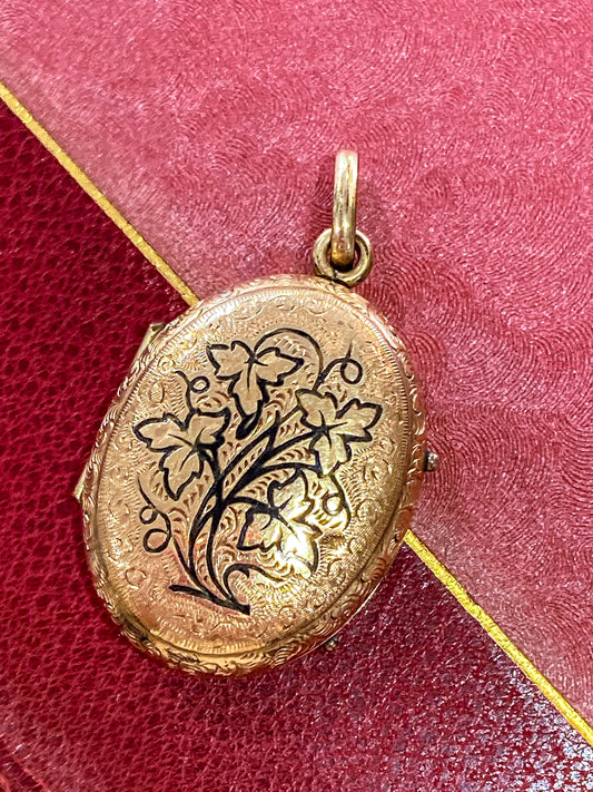 Antique Gold Filled Oval Floral Engraved Mourning Hair Locket Pendant