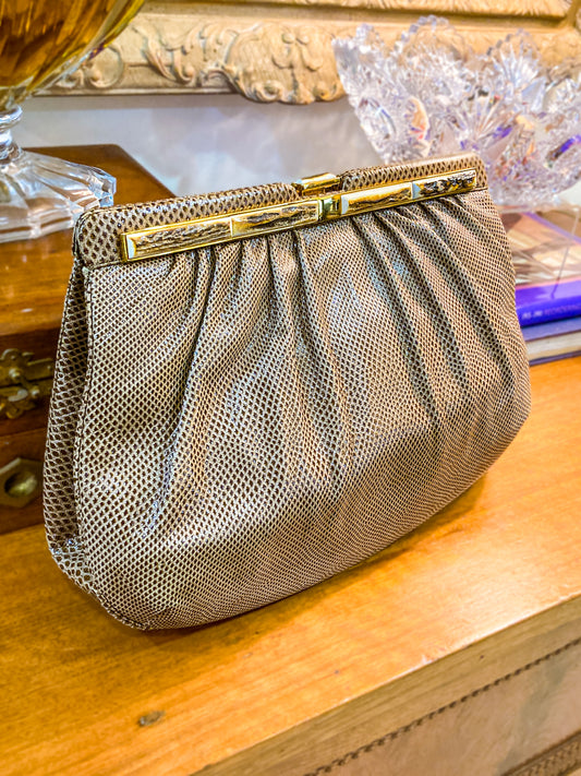 Vintage Judith Leiber Horn Lizard Leather Beige Handbag Clutch Crossbody Purse