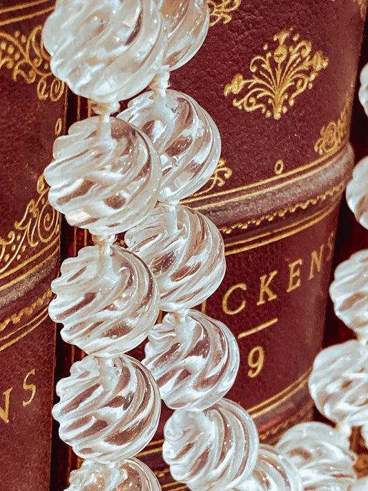 Spiral Carved Rock Crystal Hand Knotted 32" Long Beaded Rope Necklace