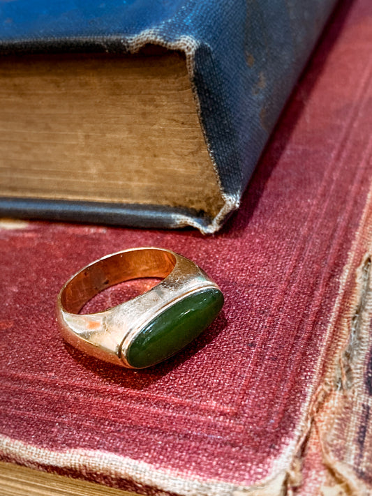 Timeless Vintage 14K Yellow Gold Oval Green Jade MCM Mod Ring